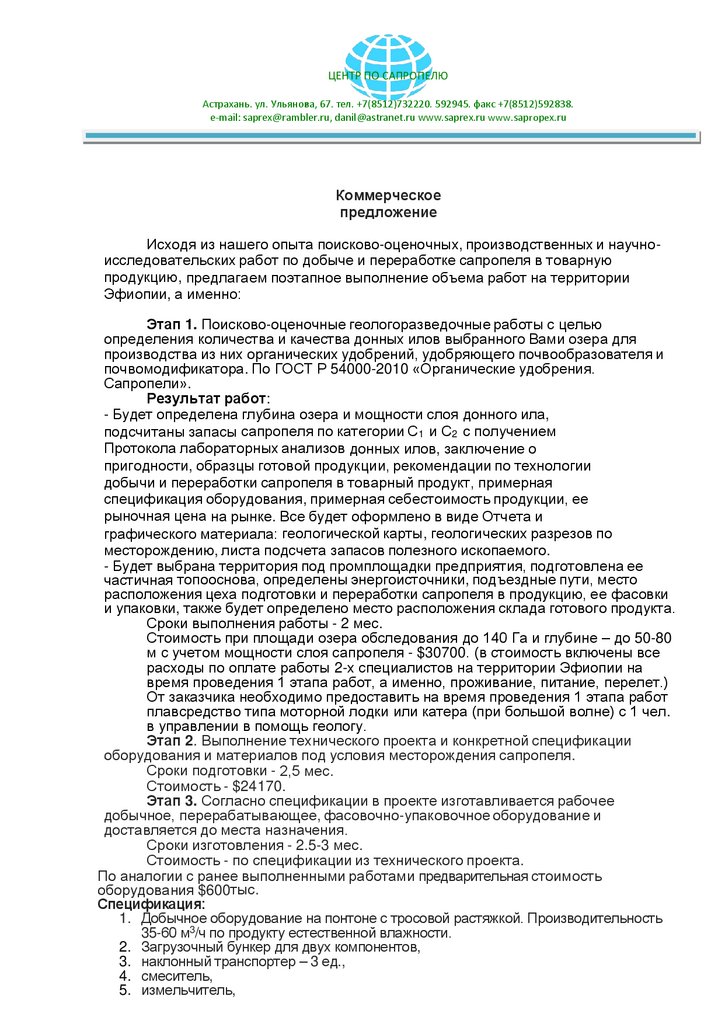 Исходя из нашего опыта поисково-оценочных, производственных и научноисследовательских работ по добыче и переработке сапропеля в товарную