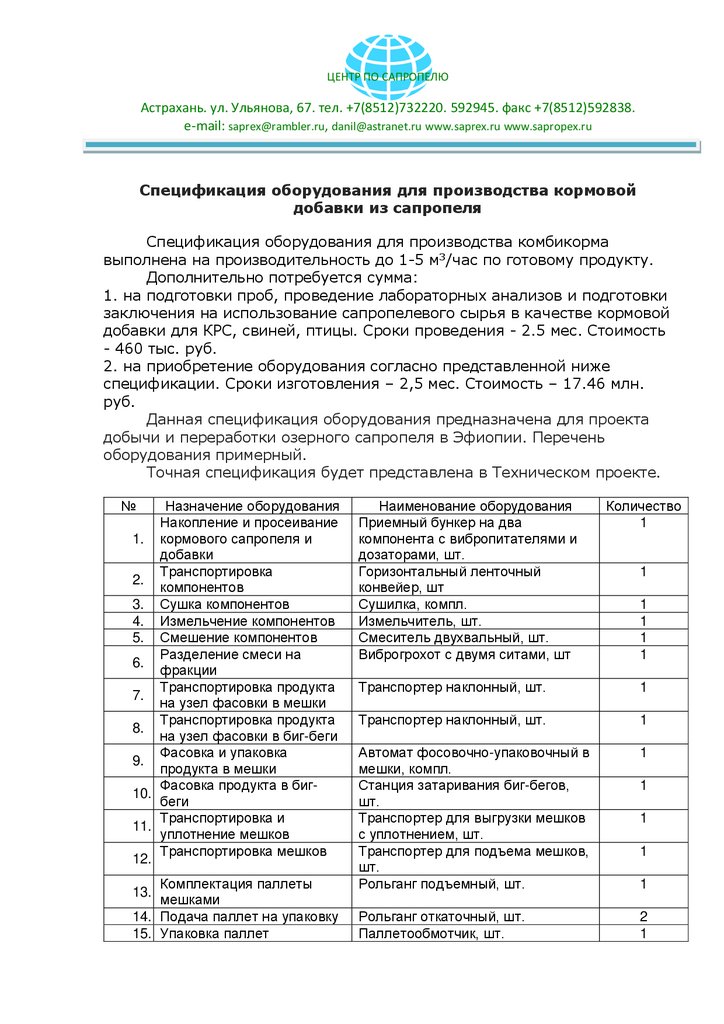 добычи и переработки озерного сапропеля в Эфиопии. Перечень
