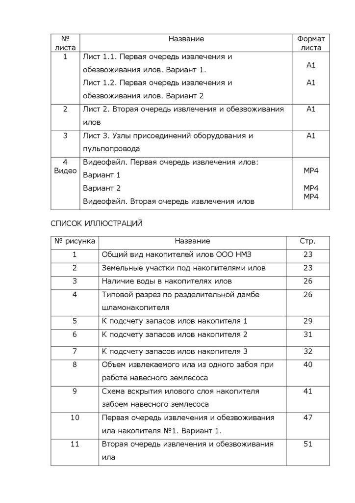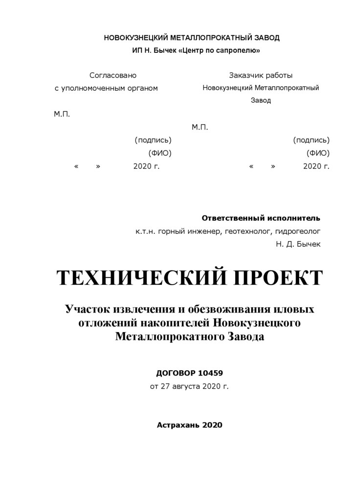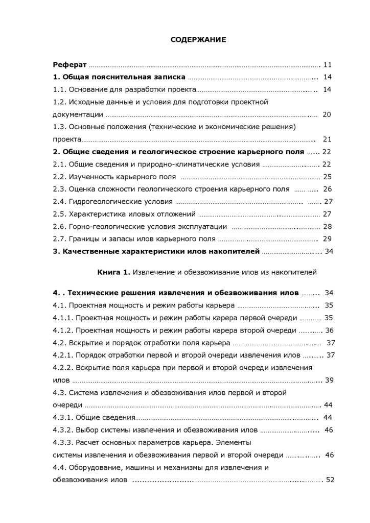 Образец содержания технического проекта обезвоживания илов