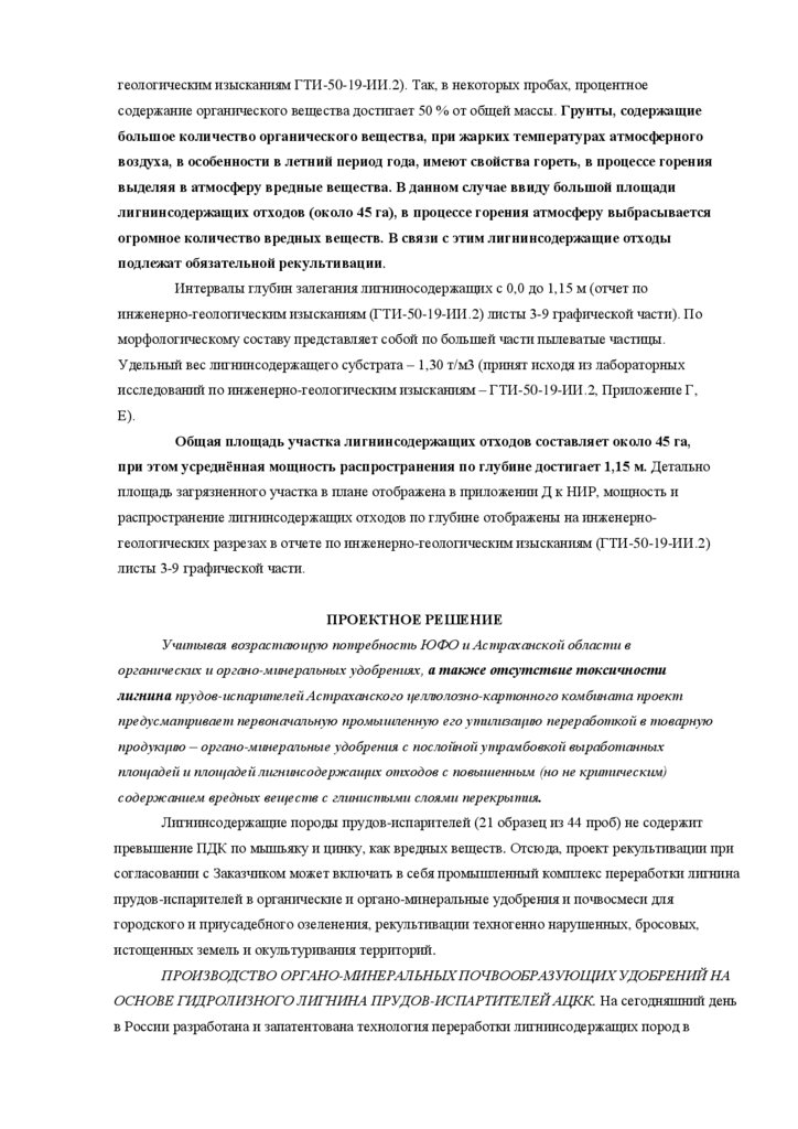 распространение лигнинсодержащих отходов по глубине отображены на инженерногеологических разрезах в отчете по инженерно-геологическим изысканиям (ГТИ-50-19-ИИ.2)