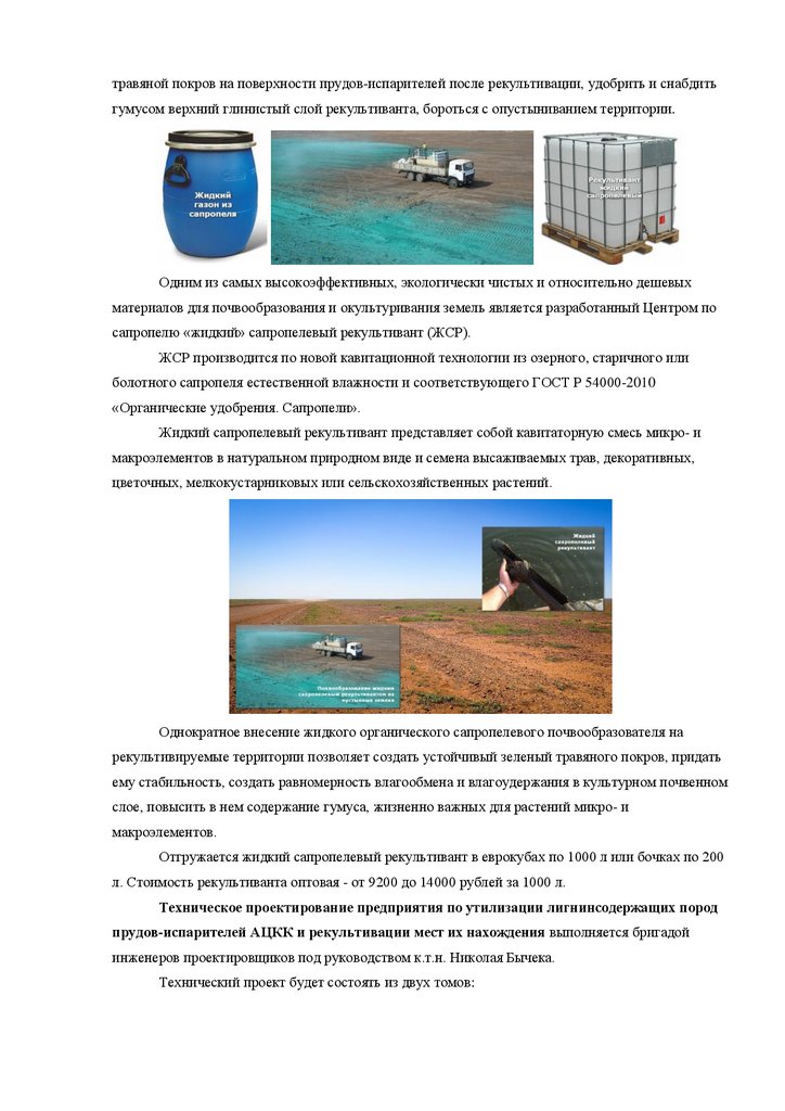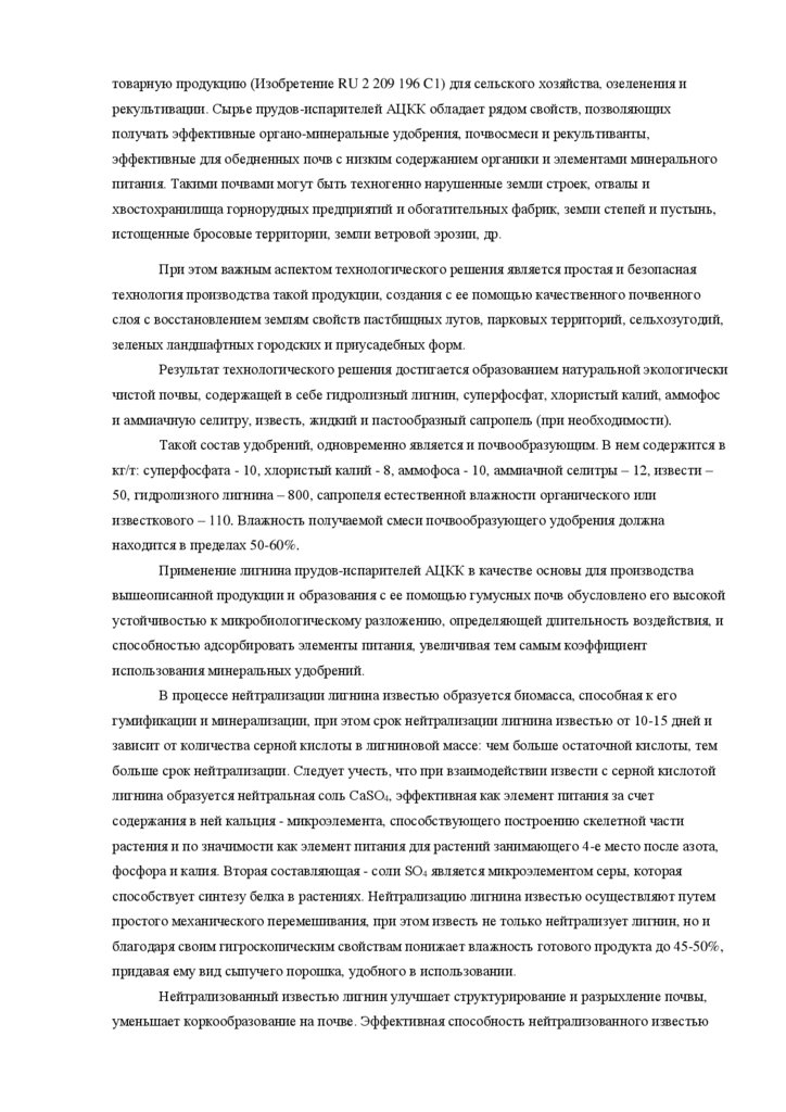 товарную продукцию (Изобретение RU 2 209 196 C1) для сельского хозяйства, озеленения ирекультивации. Сырье прудов-испарителей АЦКК обладает рядом свойств, позволяющих