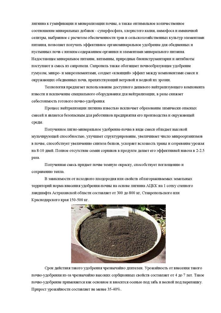 вышеописанной продукции и образования с ее помощью гумусных почв обусловлено его высокой