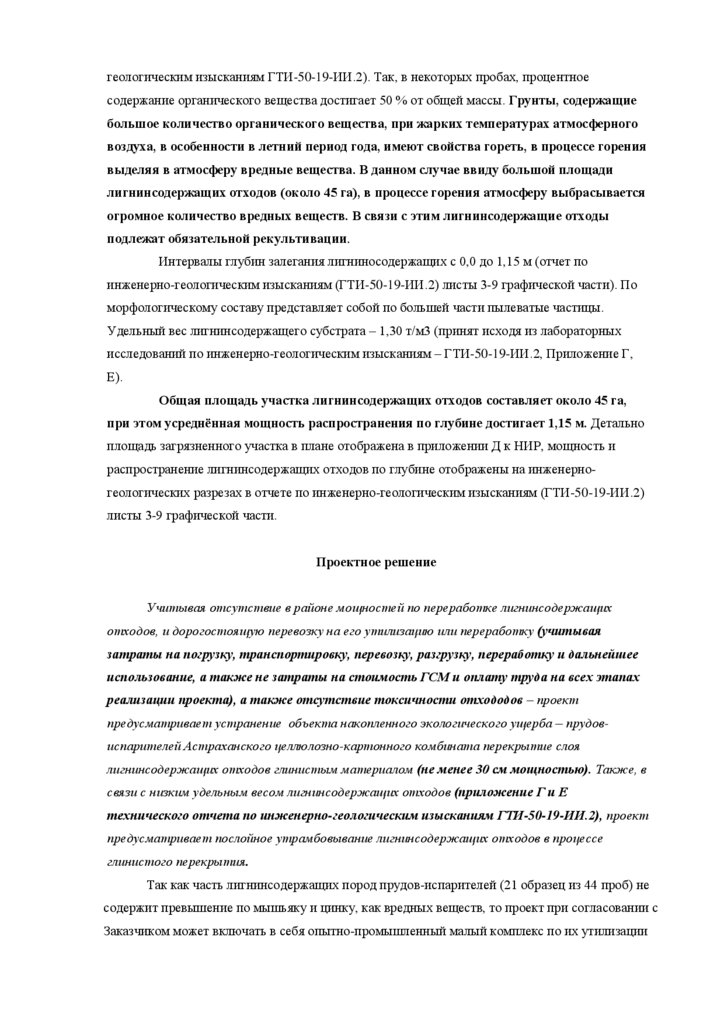 распространение лигнинсодержащих отходов по глубине отображены на инженерногеологических разрезах в отчете по инженерно-геологическим изысканиям (ГТИ-50-19-ИИ.2)
