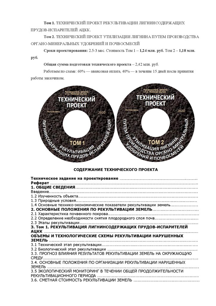 ТЕХНИЧЕСКИЙ ПРОЕКТ РЕКУЛЬТИВАЦИИ ЛИГНИНСОДЕРЖАЩИХ ПРУДОВ-ИСПАРИТЕЛЕЙ