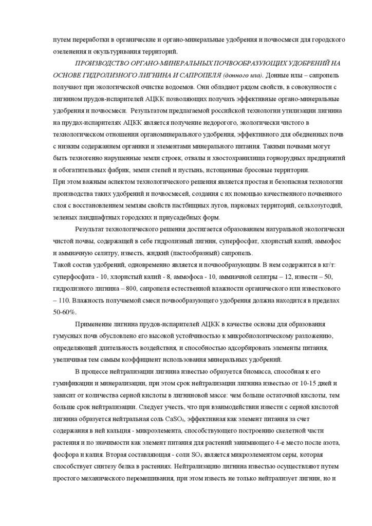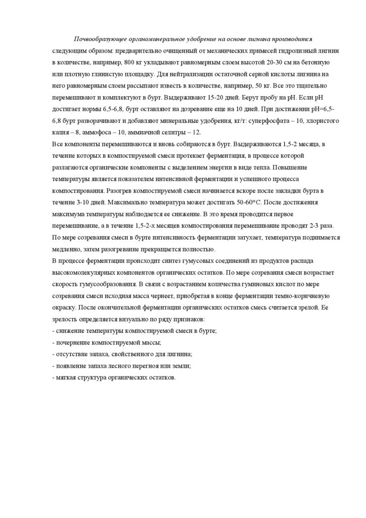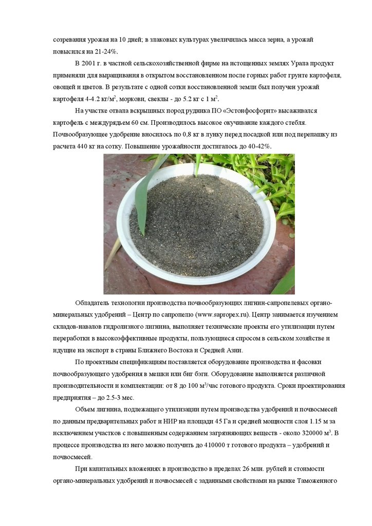 удобрения и почвосмеси. Результатом предлагаемой российской технологии утилизации лигнина