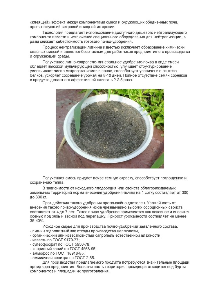 (до 2-2,2%), азота, фосфора и калия (до 6 мг/100 г). Удобрение-почвообразователь