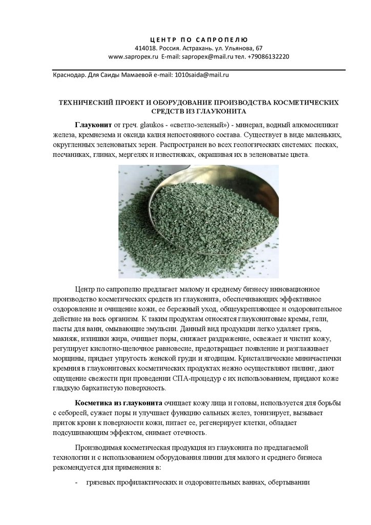 ЦЕНТР ПО САПРОПЕЛЮ414018. Россия. Астрахань. ул. Ульянова, 67