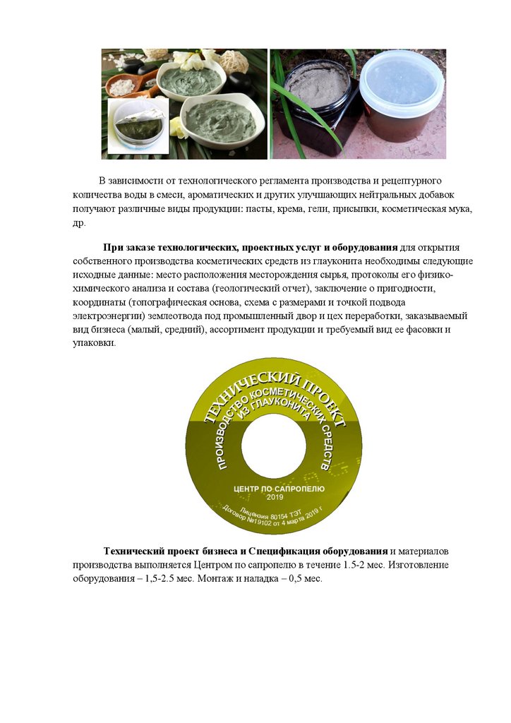 производство косметических средств из глауконита, обеспечивающих эффективное