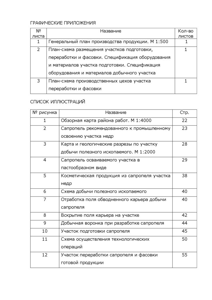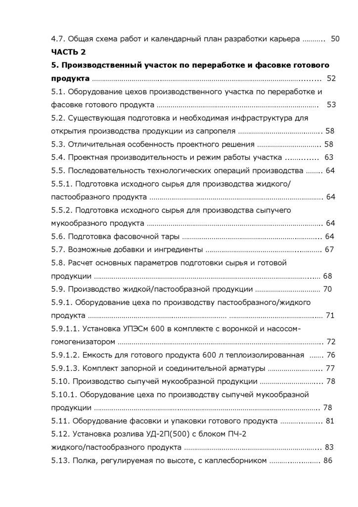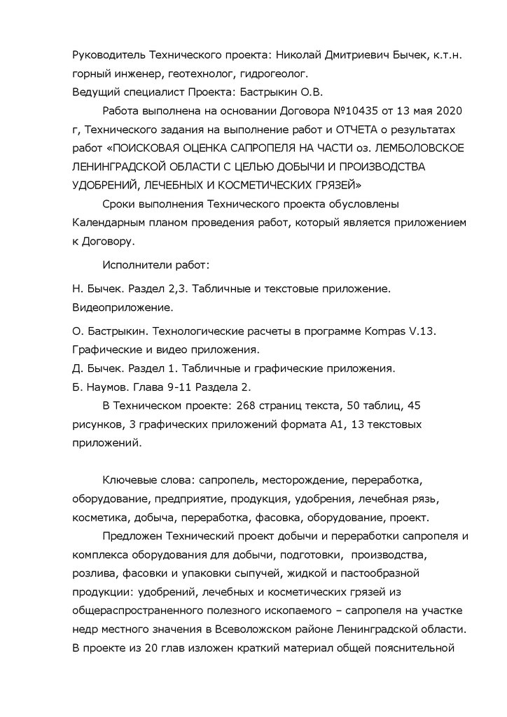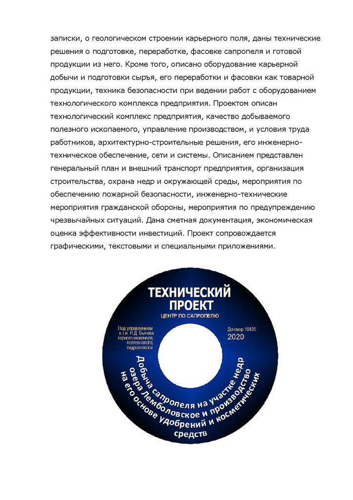 Содержание Проекта производства удобрений и косметики из сапропеля (Лемболовское)