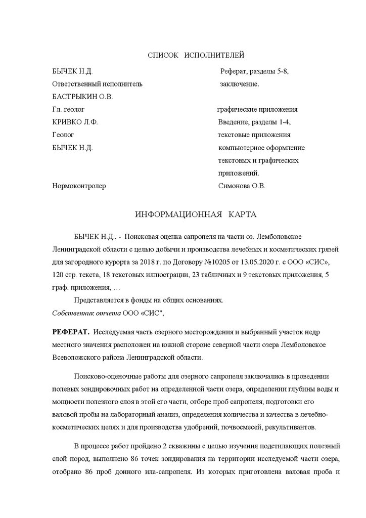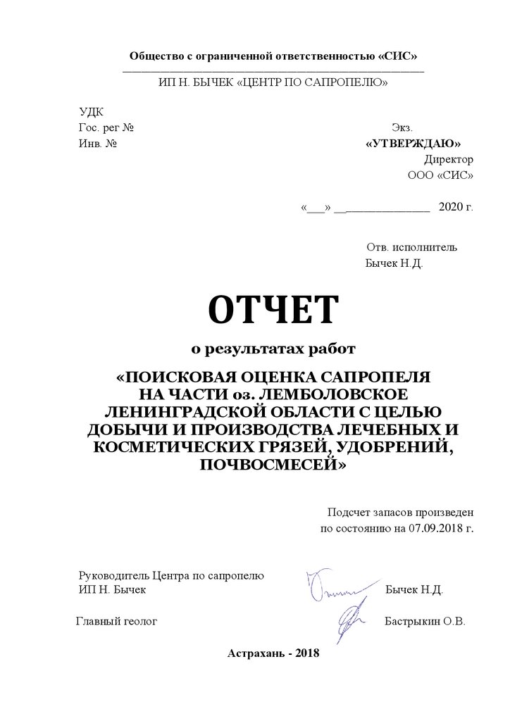 ИП Н.Бычек «Центр по сапропелю» по рассмотрению отчета по объекту: