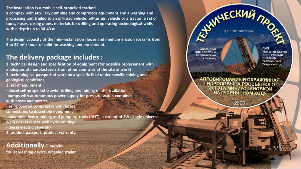 The installation is a mobile self-propelled trackeda complex with auxiliary pumping and compressor equipment and a washing and