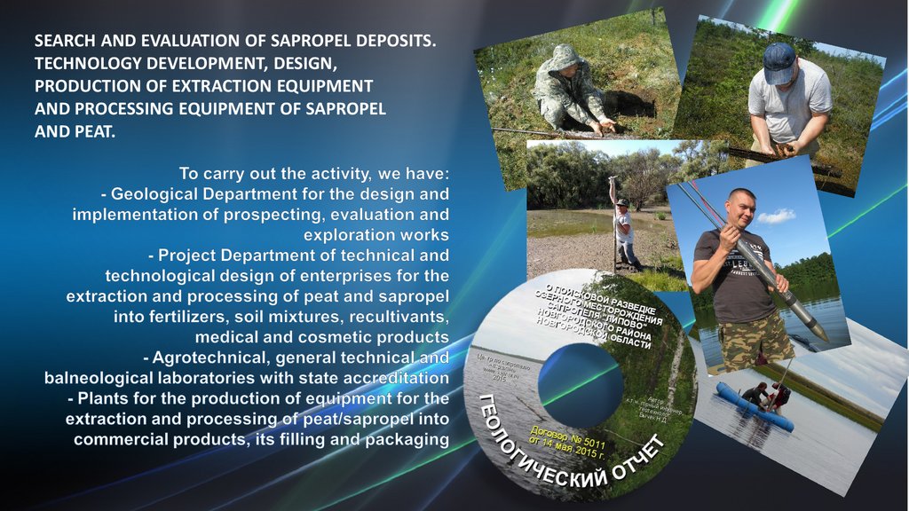 1. SEARCH AND EVALUATION OF SAPROPEL DEPOSITS.TECHNOLOGY DEVELOPMENT, DESIGN,