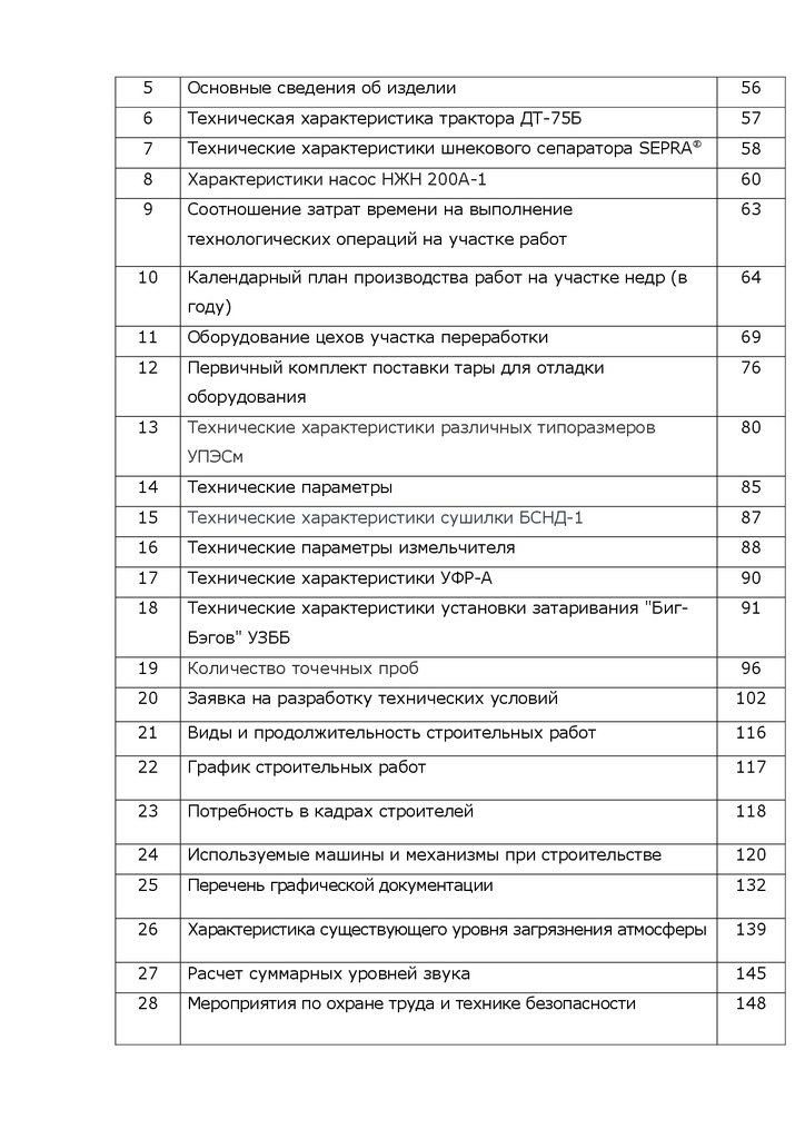 4. Технические решения добычи и подготовки сырья ………..……….. 38
