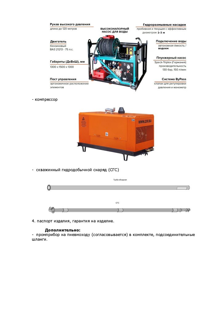 комплектом оборудования (напорный насос, компрессор, СГС, шланги, буровой и