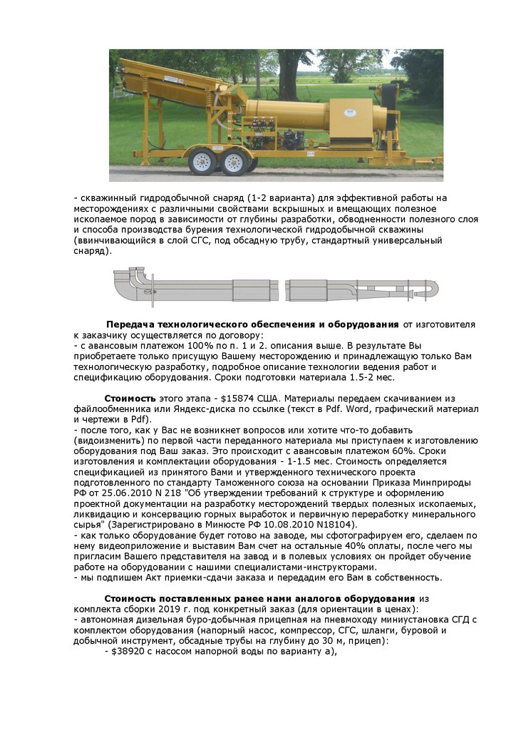 Миниустановка скваажиной гидродобычи россыпного золота. Ком. предложение