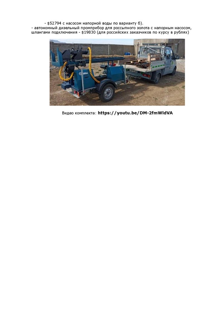 - $52794 c насосом напорной воды по варианту б).- автономный дизельный промприбор для россыпного золота с напорным насосом,