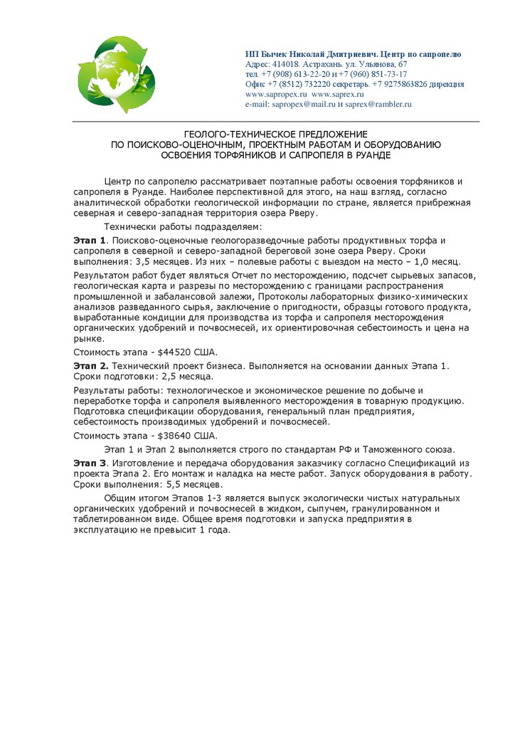 Техническое предложение. Руанда. Торфяники и сапропель. Для Куценко В