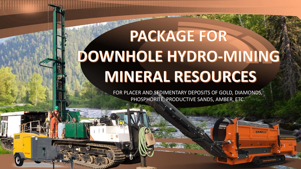 The equipment is designed for downhole hydromining (DHM) of minerals of placer andsedimentary deposits, such as gold, platinum,