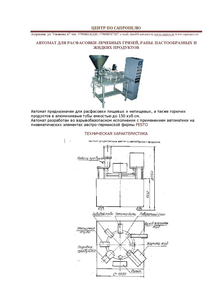 АВТОМАТ ДЛЯ РАСФАСОВКИ ЛЕЧЕБНЫХ ГРЯЗЕЙ, РАПЫ. ПАСТООБРАЗНЫХ И