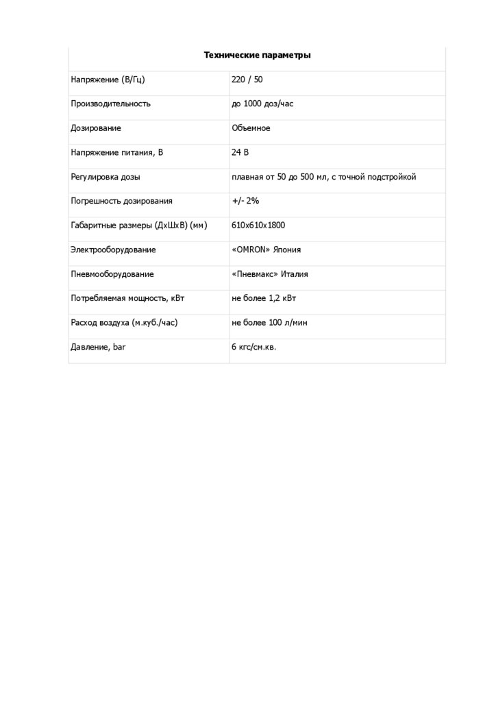 Предназначено для фасовки жидких и пастообразных продуктов в пластиковую тару любой формы