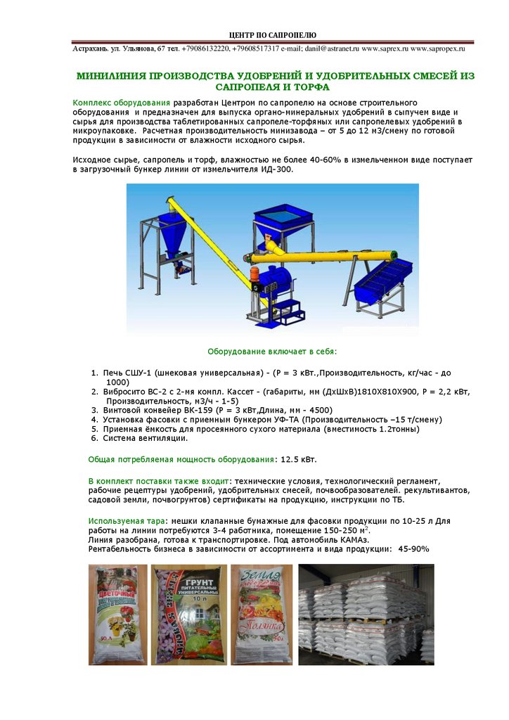 МИНИЛИНИЯ ПРОИЗВОДСТВА УДОБРЕНИЙ И УДОБРИТЕЛЬНЫХ СМЕСЕЙ ИЗ
