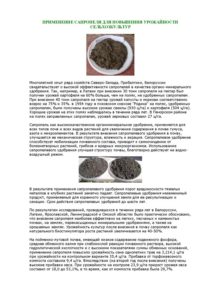 что внесение сапропеля наиболее эффективно на легких, песчаных и каменистых