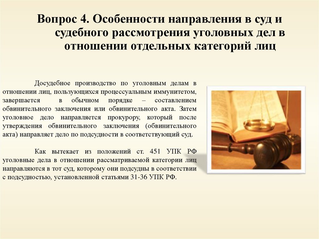 Вопрос 4. Особенности направления в суд исудебного рассмотрения уголовных дел в