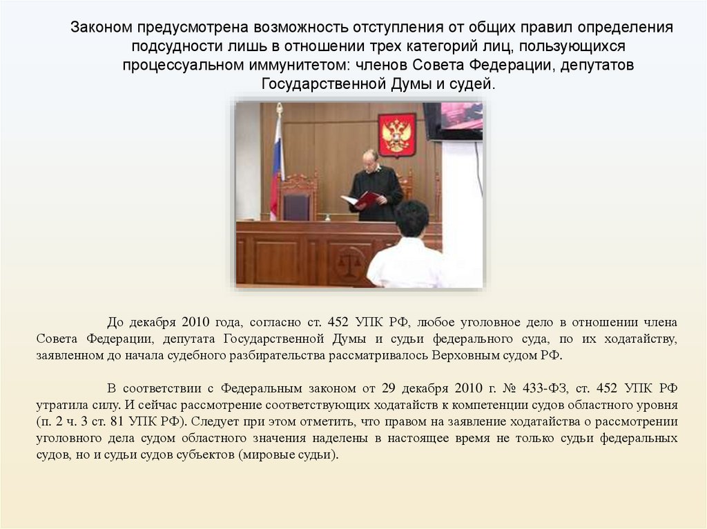 В соответствии с Федеральным законом от 29 декабря 2010 г. № 433-ФЗ, ст. 452 УПК РФ