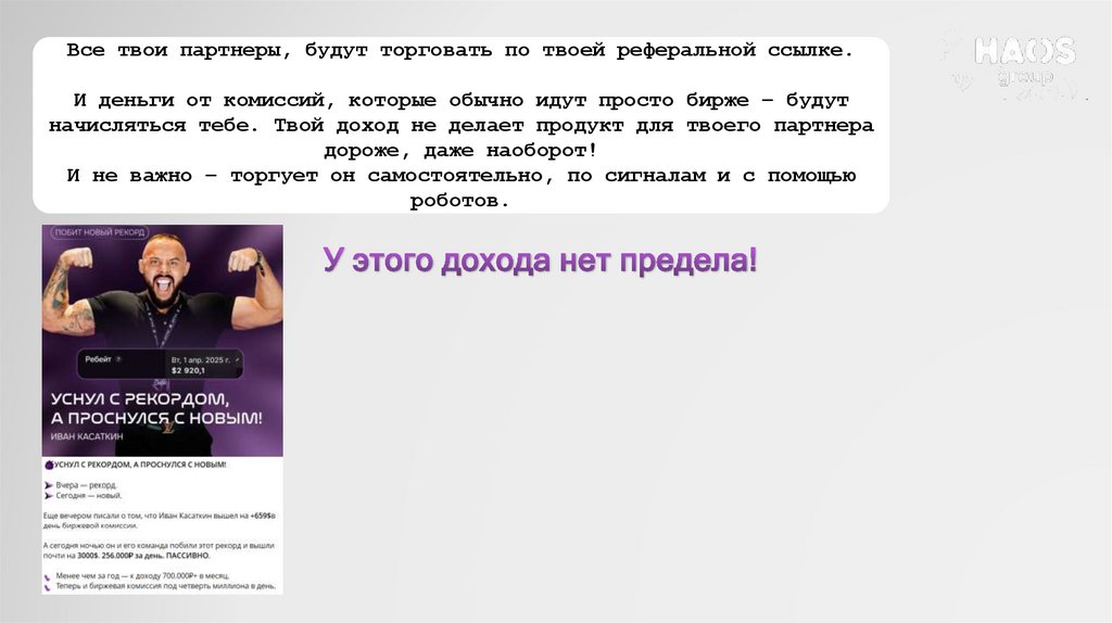 ✅ Доход со всех линий биржи, а не с 7, как у большинства.