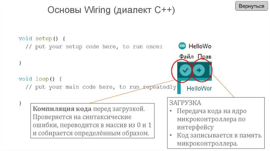 Основы Wiring (диалект C++)Компиляция кода перед загрузкой.