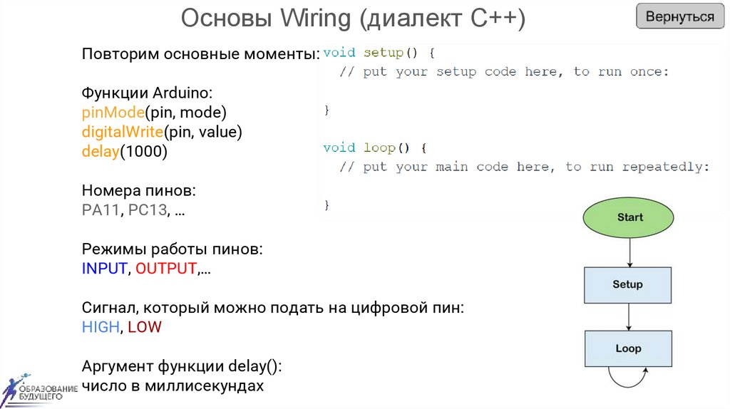 Основы Wiring (диалект C++)Повторим основные моменты: