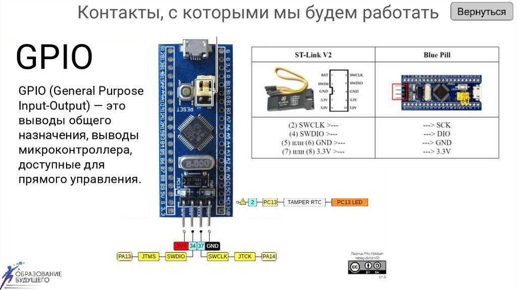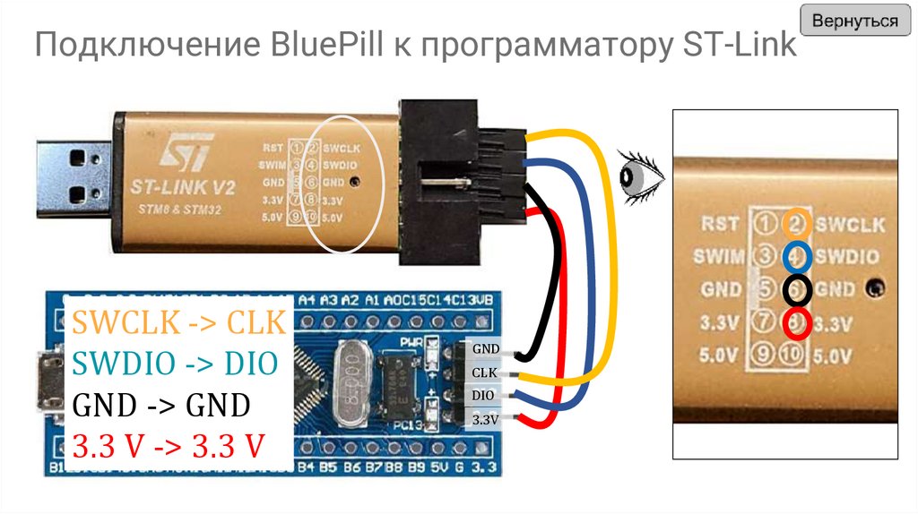 Подключение BluePill к программатору ST-LinkSWCLK -> CLK