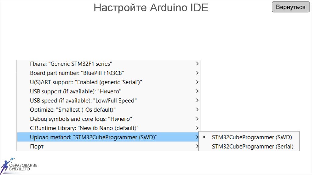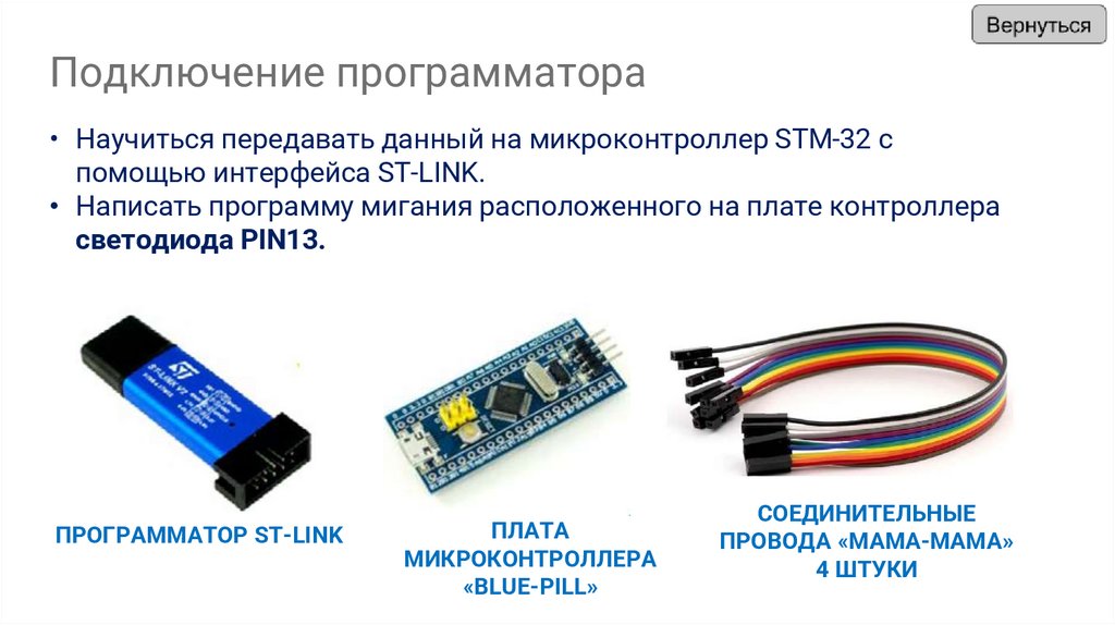 Подключение программатора• Научиться передавать данный на микроконтроллер STM-32 с