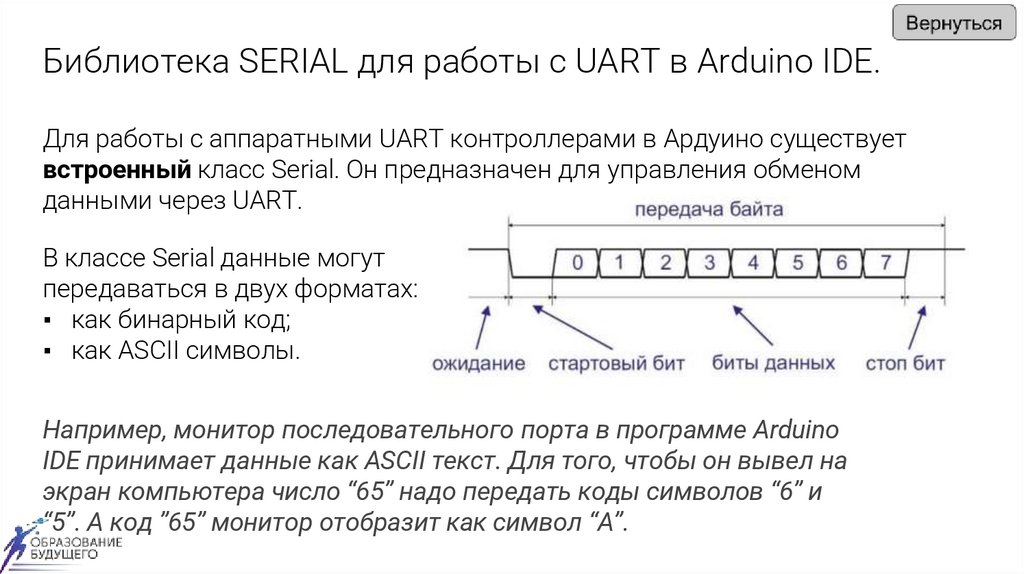 Библиотека SERIAL для работы с UART в Arduino IDE.Для работы с аппаратными UART контроллерами в Ардуино существует