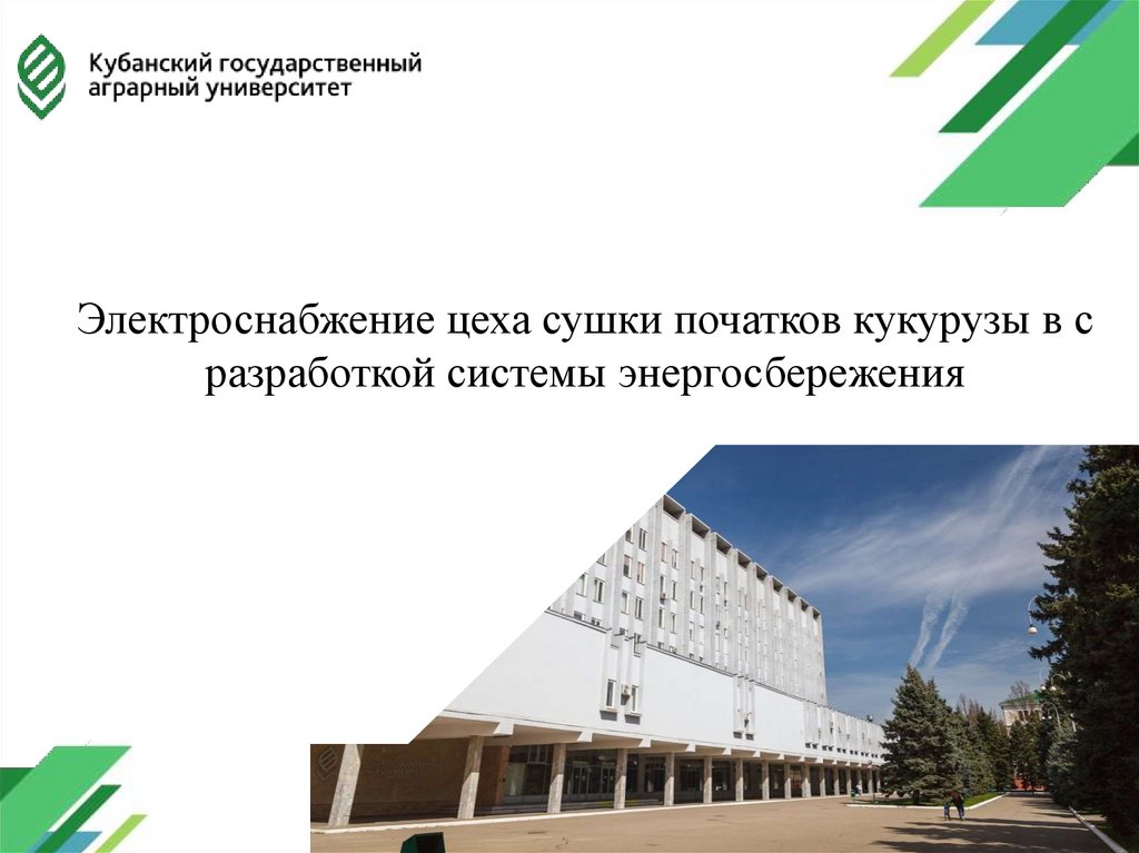 Электроснабжение цеха сушки початков кукурузы в сразработкой системы энергосбережения