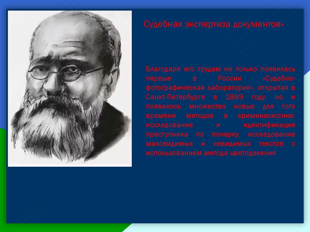 «Судебная экспертиза документов»Благодаря его трудам не только появилась