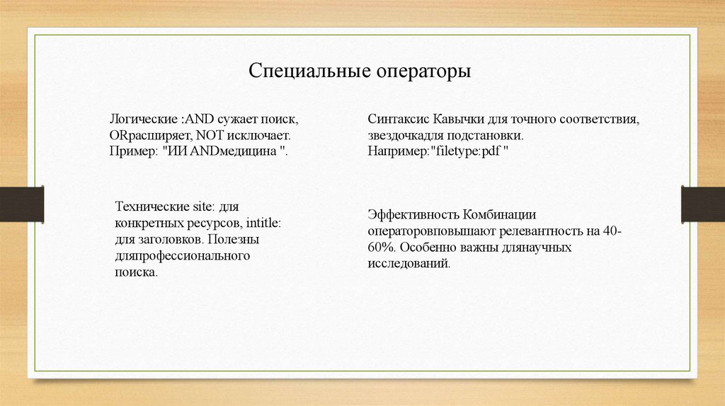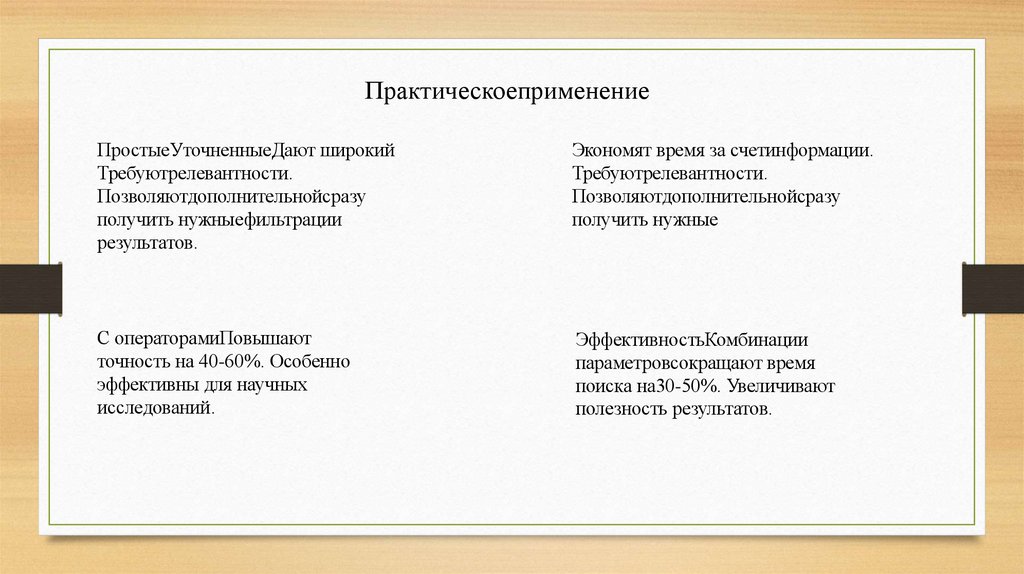 операторовповышают релевантность на 4060%. Особенно важны длянаучных