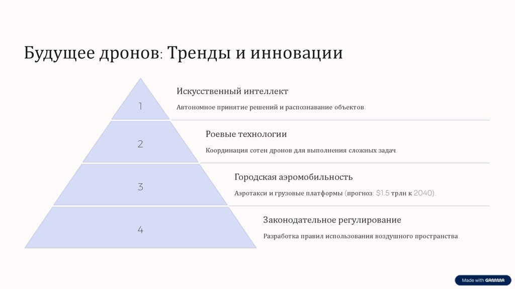 Аэротакси и грузовые платформы (прогноз: $1.5 трлн к 2040).