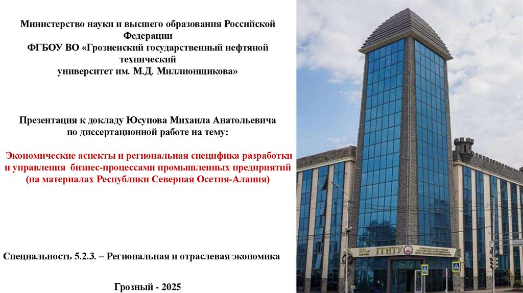 ФГБОУ ВО «Грозненский государственный нефтяной