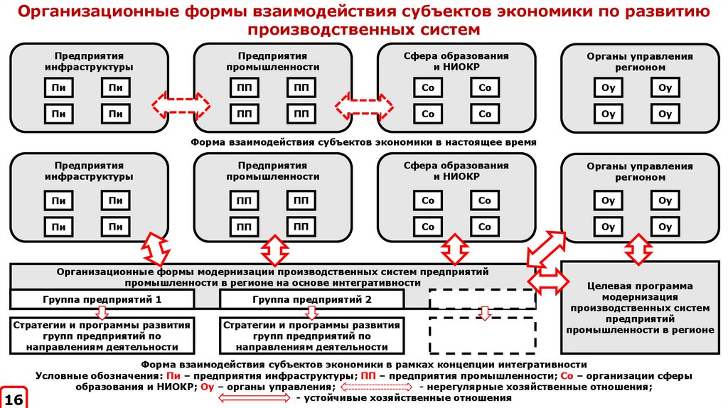Организационные формы взаимодействия субъектов экономики по развитиюпроизводственных систем