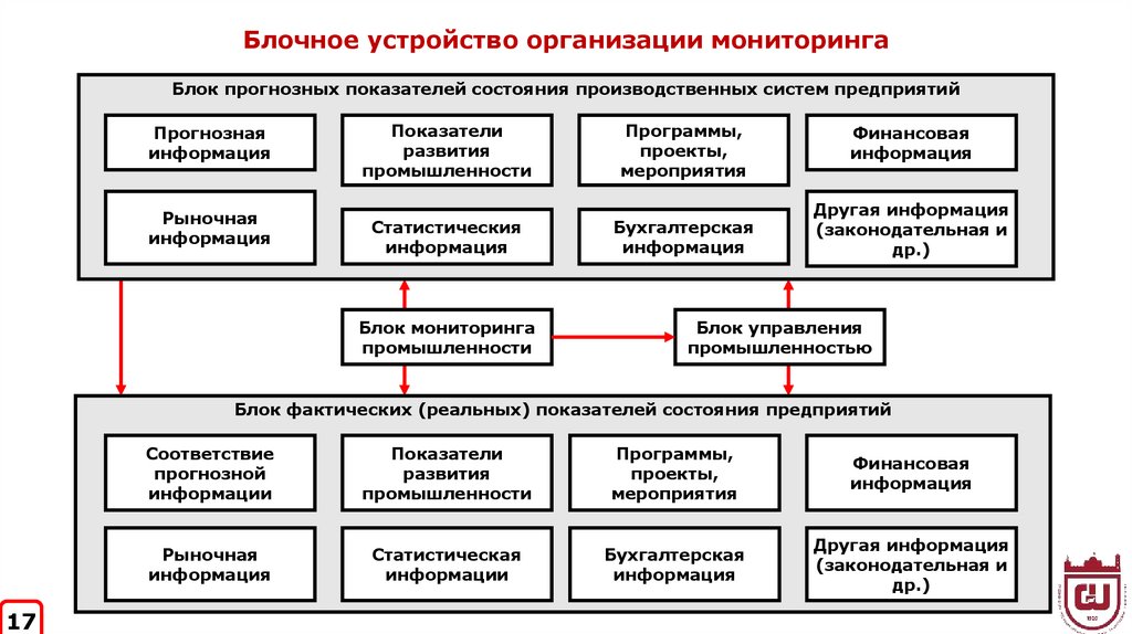Блочное устройство организации мониторингаБлок прогнозных показателей состояния производственных систем предприятий