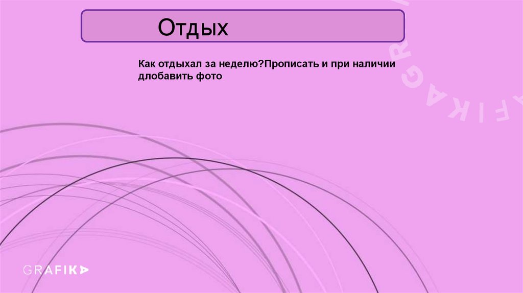ОтдыхКак отдыхал за неделю?Прописать и при наличии