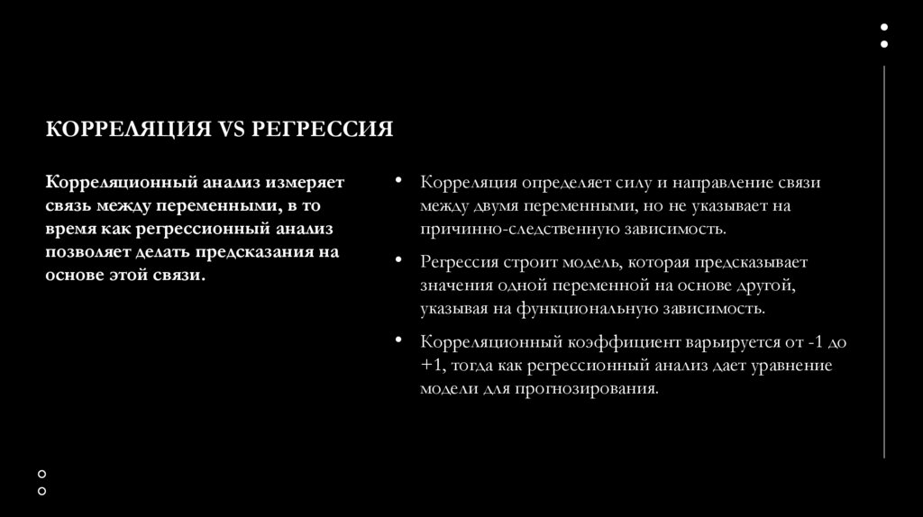 КОРРЕЛЯЦИЯ VS РЕГРЕССИЯКорреляционный анализ измеряет