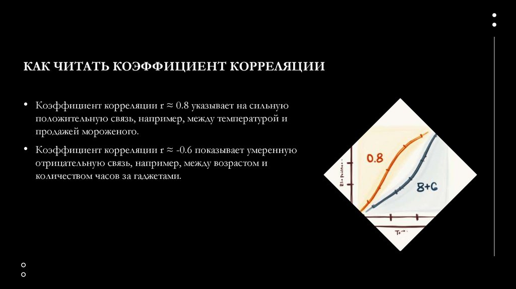 КАК ЧИТАТЬ КОЭФФИЦИЕНТ КОРРЕЛЯЦИИ• Коэффициент корреляции r ≈ 0.8 указывает на сильную