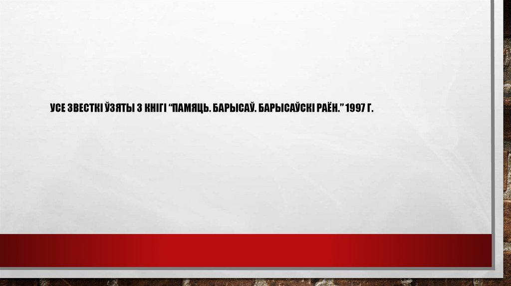 ТРАГЕДЫЯ БАРЫСАЎСКАГА ПАДПОЛЛЯ22 лютага 1942 года атрад Яраша быў разбіты. Падпольны райком перастаў існаваць.