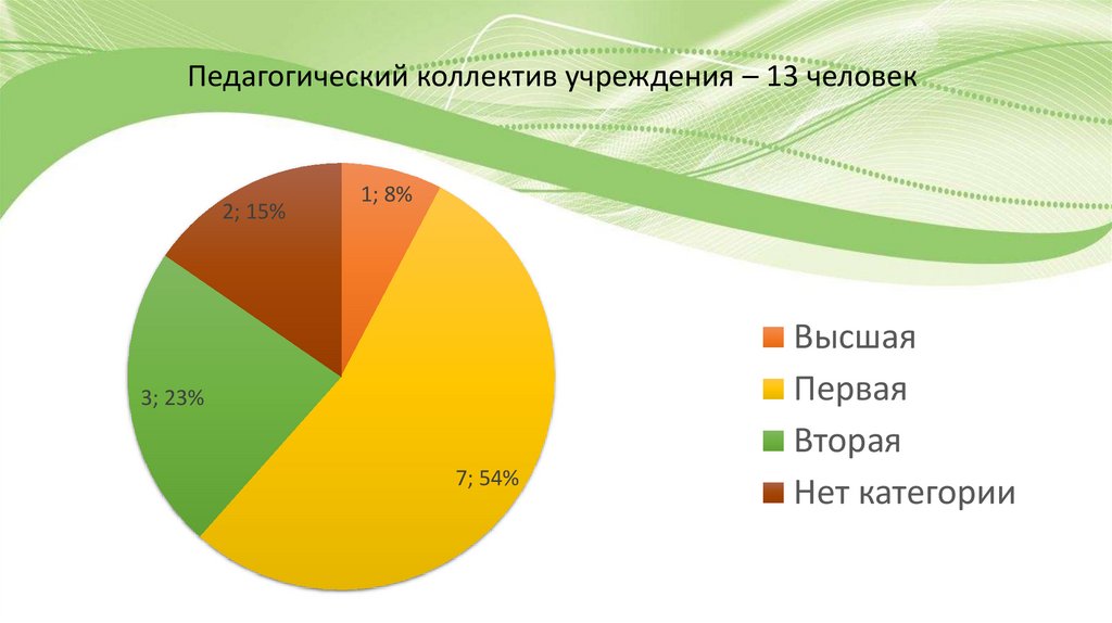 Педагогический коллектив учреждения – 13 человек2; 15%