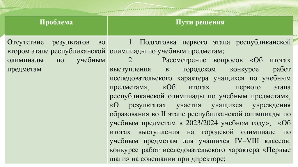 совершенствование системы работы по вовлечению учащихся в олимпиадное