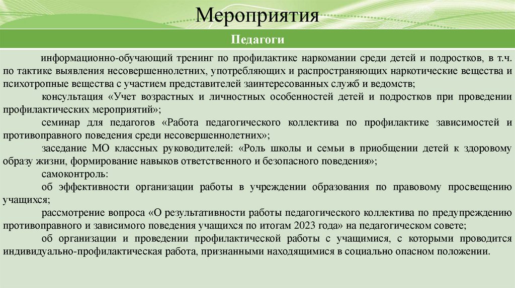 Основные направления исодержание деятельности