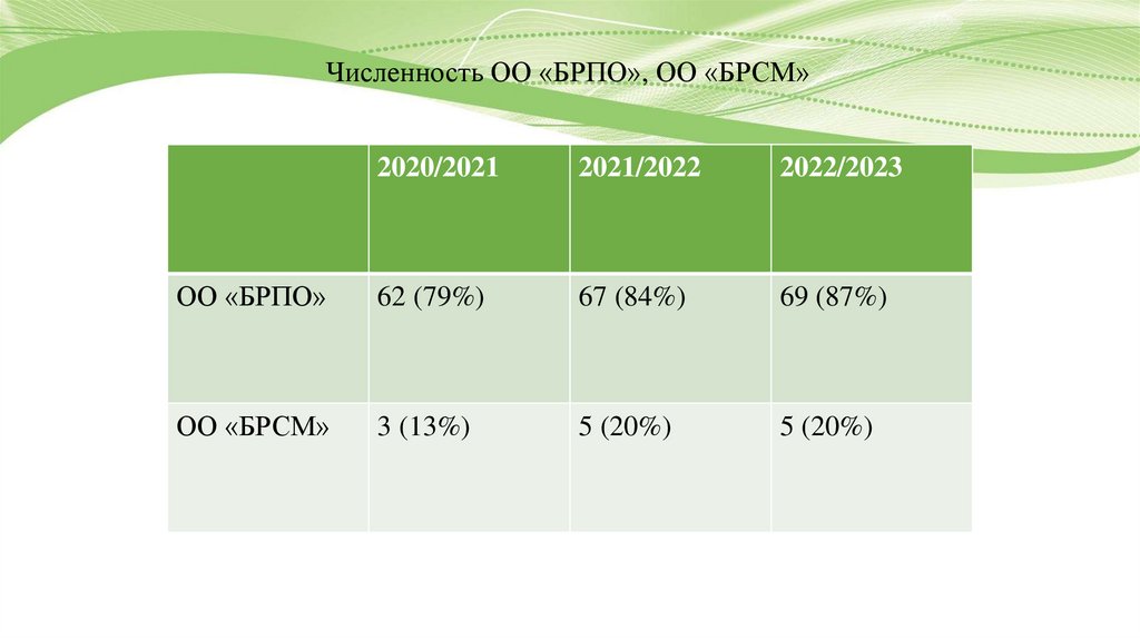 Численность ОО «БРПО», ОО «БРСМ»2020/2021