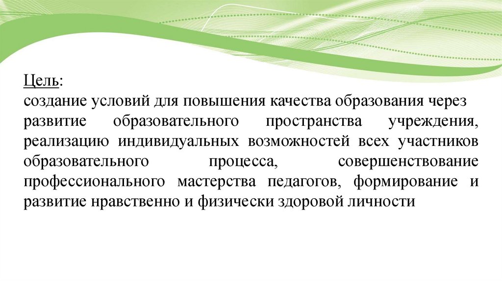 Цель:создание условий для повышения качества образования через